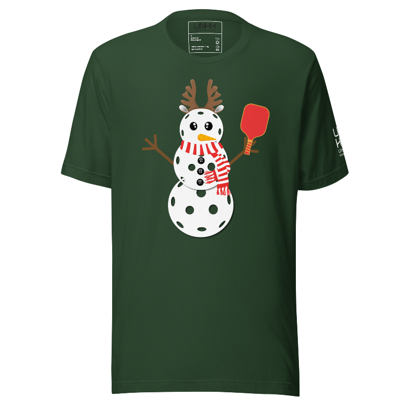 Bring some pickleball joy to your winter wardrobe with this festive tee! Featuring a snowman made of pickleballs holding a paddle, it’s the perfect mix of holiday spirit and court-side fun. Soft, lightweight, and perfectly stretchy, this shirt keeps you comfortable whether you’re playing or just spreading cheer around town.